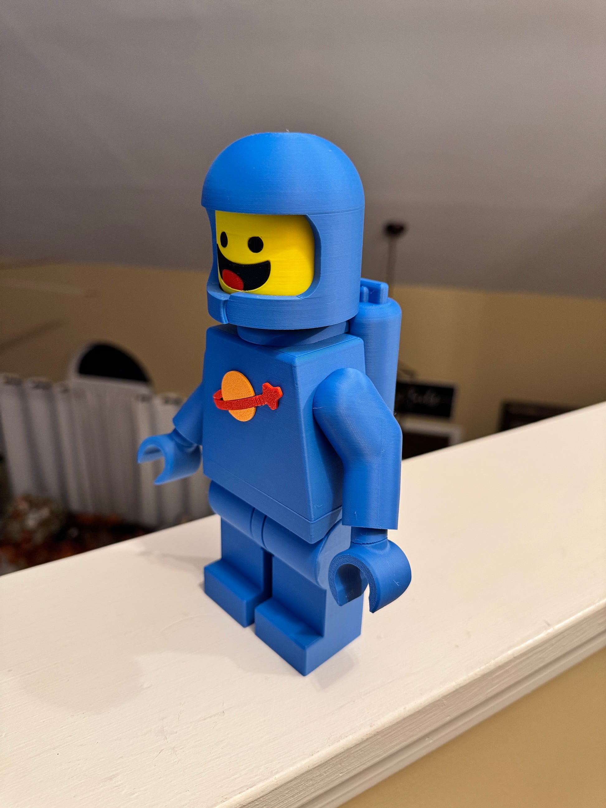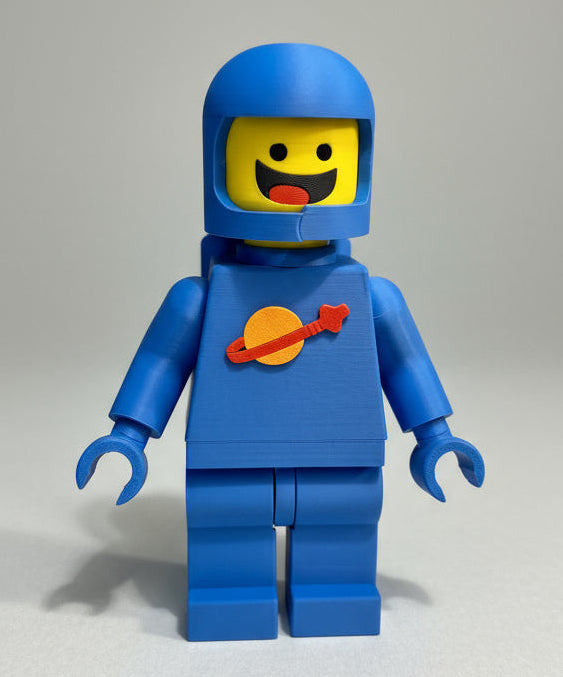 Relive the charm of classic space adventures with this 3D printed Benny the Astronaut figure, inspired by the beloved blue spaceman from The LEGO Movie. Standing approximately 9 inches tall, this collectible captures Benny’s iconic cracked helmet, cheerful grin, and vintage space logo for a nostalgic and fun display piece.
